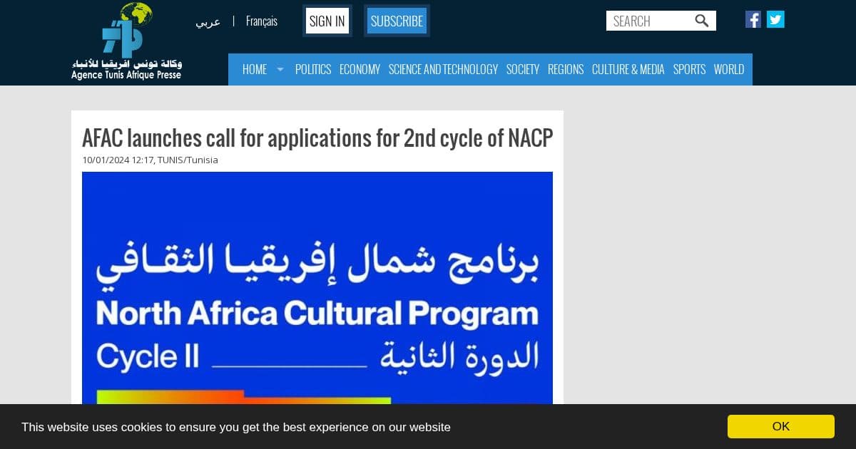 (TAP) - The call for applications for the second cycle of the North Africa Cultural Programme (NACP) is now open, the Arab Fund for Arts and Culture (AFAC) said on Monday. "Taking the five North African countries, namely Tunisia, Algeria, Egypt, Libya and Morocco as primary focus, the NACP aims to ...