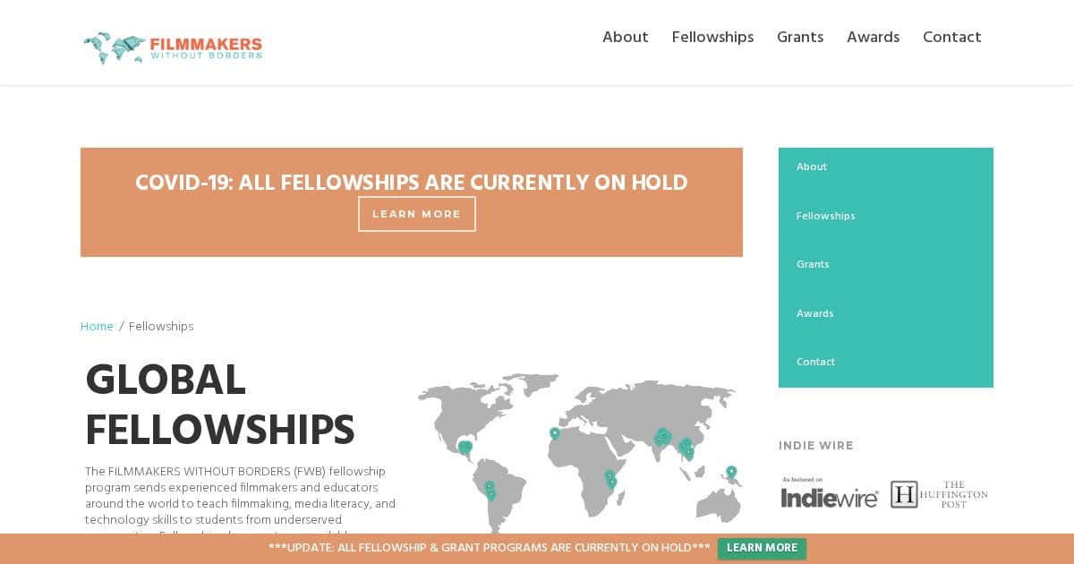 Fully-funded fellowships teaching filmmaking, media literacy, and technology to underserved students across Africa, Asia, and Latin America. Fellows spend 2–6 months embedded in partner communities.