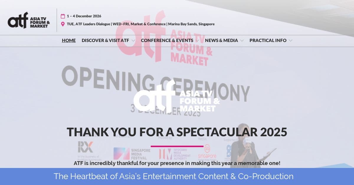 The Asia TV Forum & Market (ATF) is Asia's leading international content market, held every December at Marina Bay Sands in Singapore, with participants from 60+ countries. ATF runs the ATF In-Development Club — a pitch session for global series and film projects. December timing (after MIPCOM, before the US market season) makes it the last major deal-making event of the year. African content has participated and Asian streamers are increasingly interested in African stories, particularly via Nollywood's expanding digital distribution partnerships with Southeast Asian platforms. Singapore is increasingly connected to African content markets. ATF is more